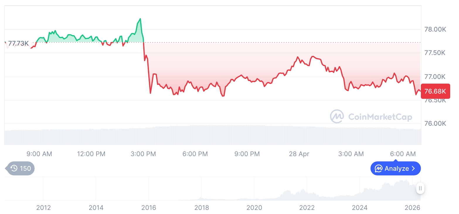 ![[저녁 시세브리핑] 암호화폐 시장 하락세… 비트코인 76,709달러, 이더리움 2,278달러](https://f1.tokenpost.kr/2026/04/k8oor1y551.jpg)