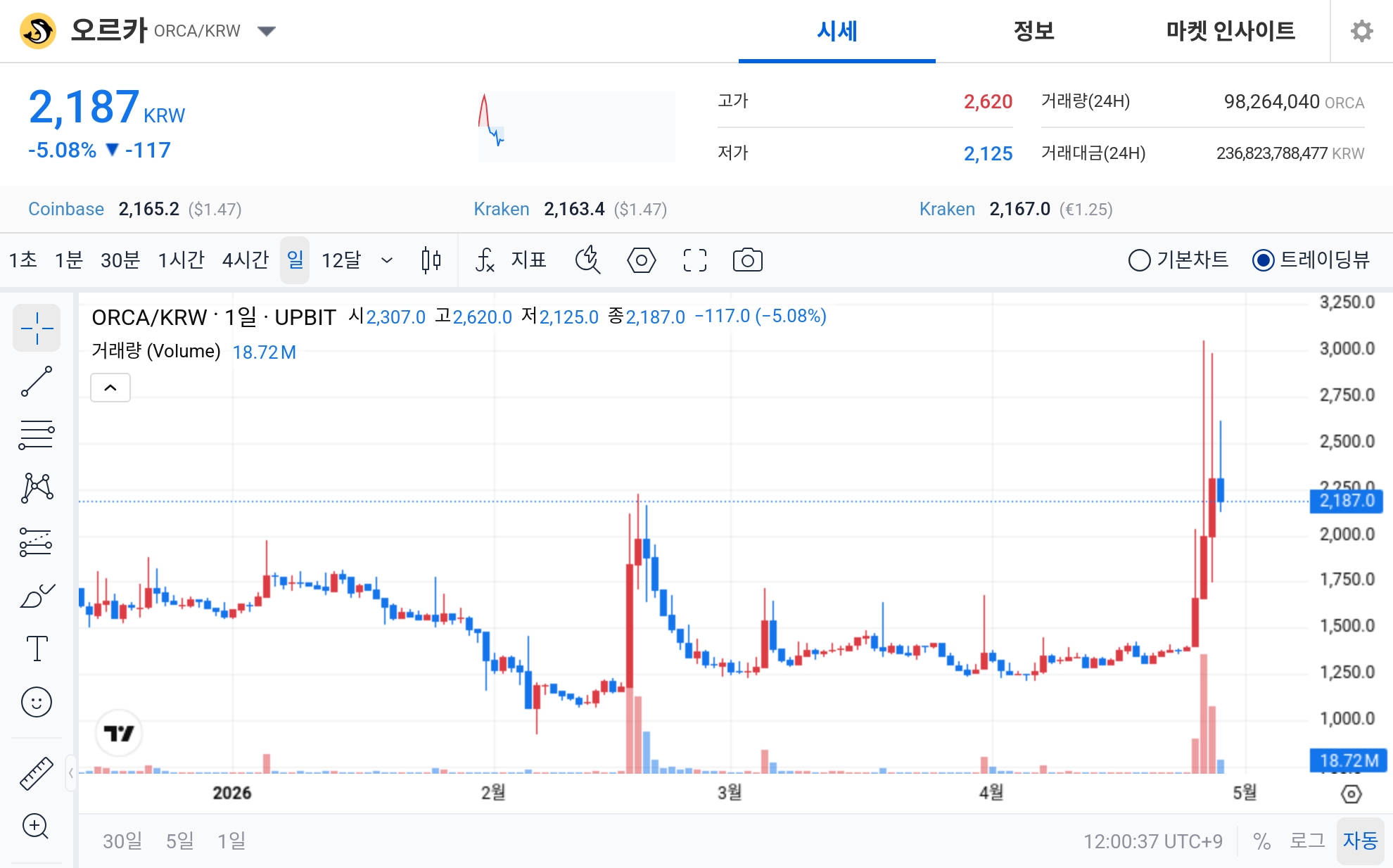 오르카(ORCA)가 최근 극단적인 투자 심리 속에서 두드러진 거래량을 기록하며 단기 변동성을 키우고 있습니다. 이날 오르카는 원화 마켓에서 2,187원에 거래되며 전일 대비 5.08% 하락했습니다. 장중 고가는 2,620원, 저가는 2,125원으로 집계되었고, 24시간 기준 거래대금은 약 2,368억 원에 달했습니다. 이러한 변화는 투자자들 사이에서의 심리적 요인이 크게 작용하고 있음을 보여주고 있습니다.